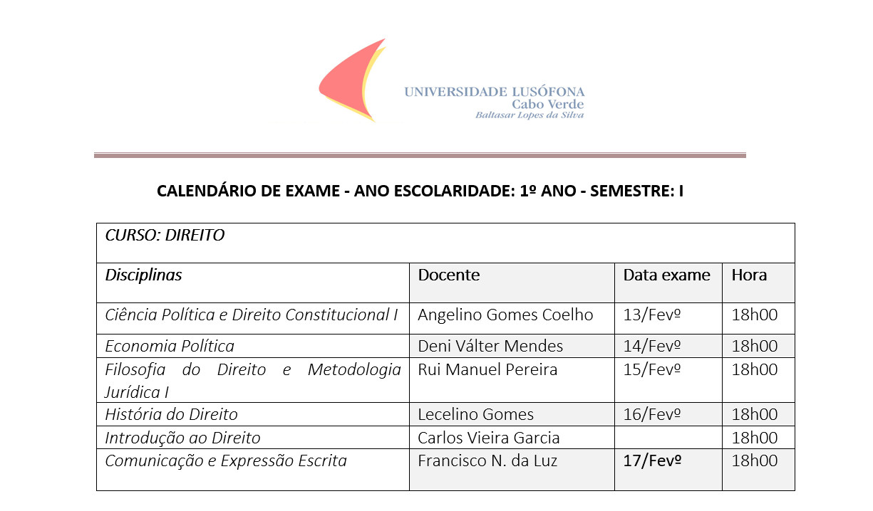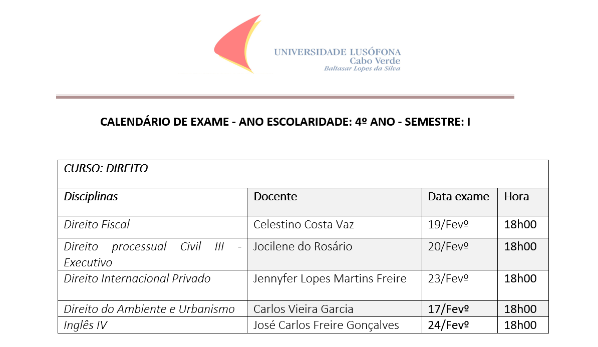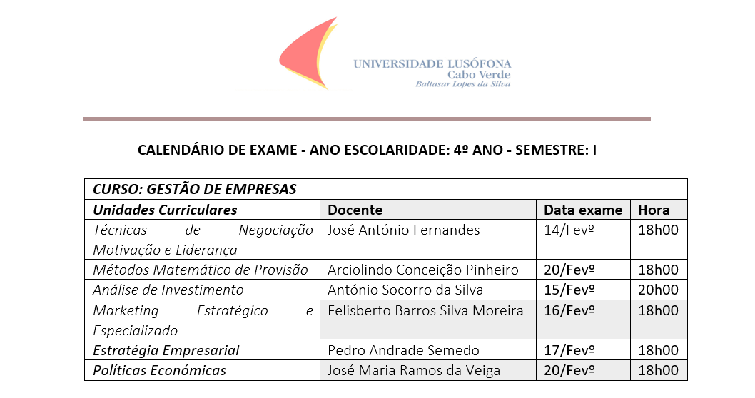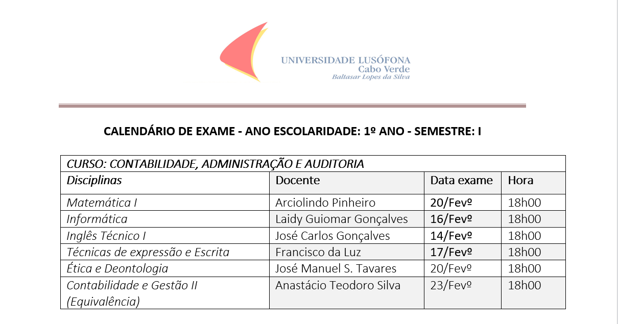 Calendário de Exames Praia