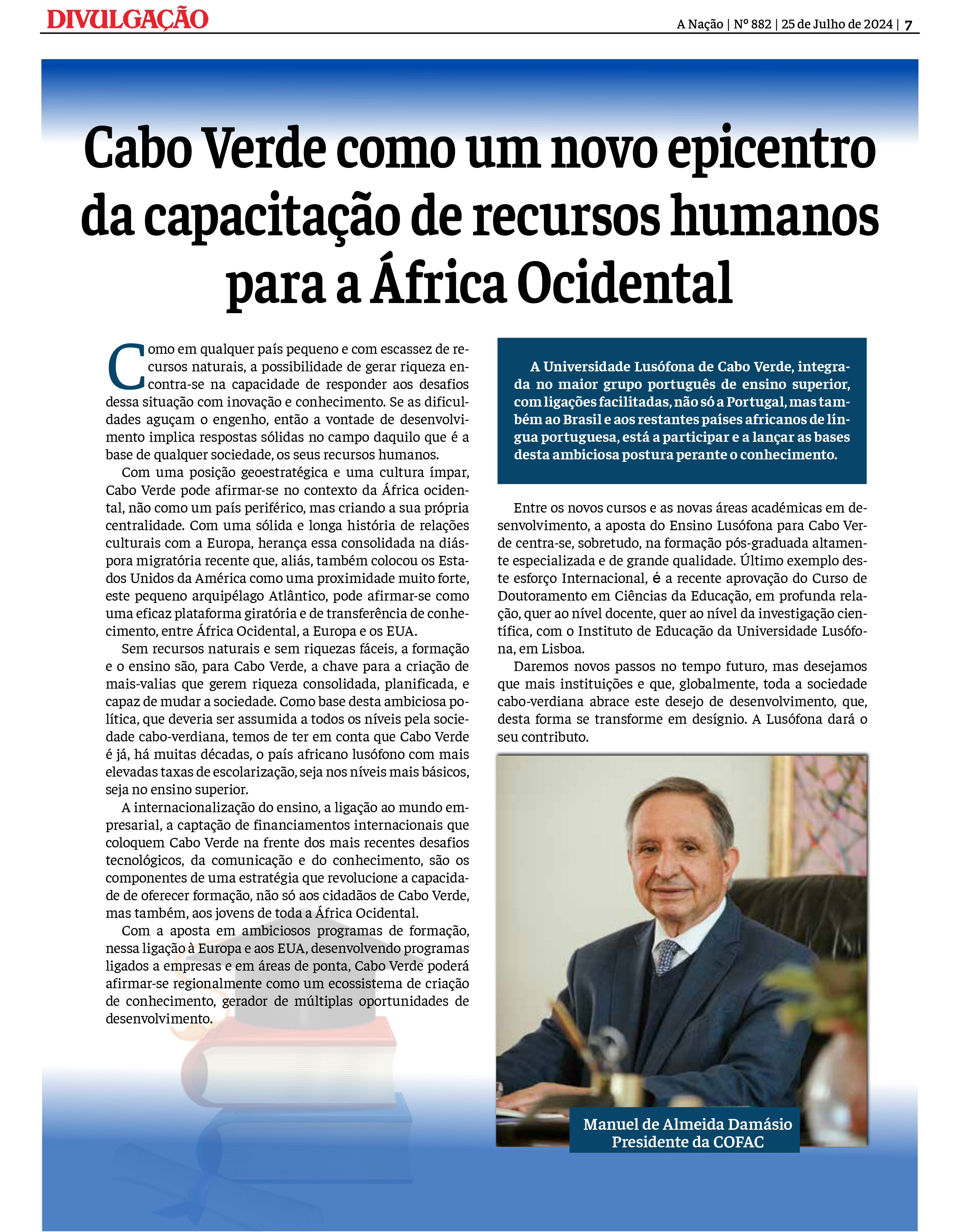 "Cabo Verde como um novo epicentro da capacitação de recursos humanos para a África Ocidental"