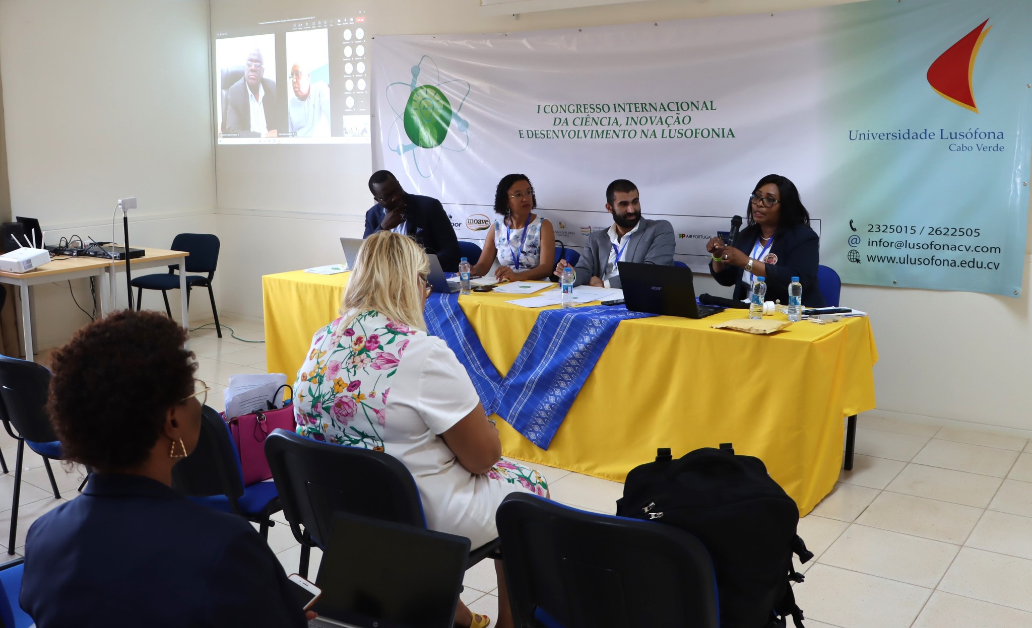 Terminou o 2º dia do Congresso Internacional, na Universidade Lusófona de Cabo Verde, com mesas redondas e conferências e com temas ligados à saúde global, investigação, transição energética e energias renováveis, o papel da sociedade civil e dos empresários no desenvolvimento científico, agricultura, turismo, património, educação, transformação digital etc, apresentados por cientistas e investigadores de C. Verde, Brasil, Portugal, Angola e Brasil.