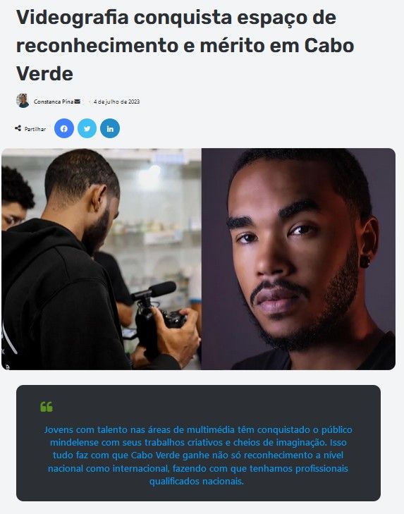 Videografia conquista espaço de reconhecimento e mérito em Cabo Verde