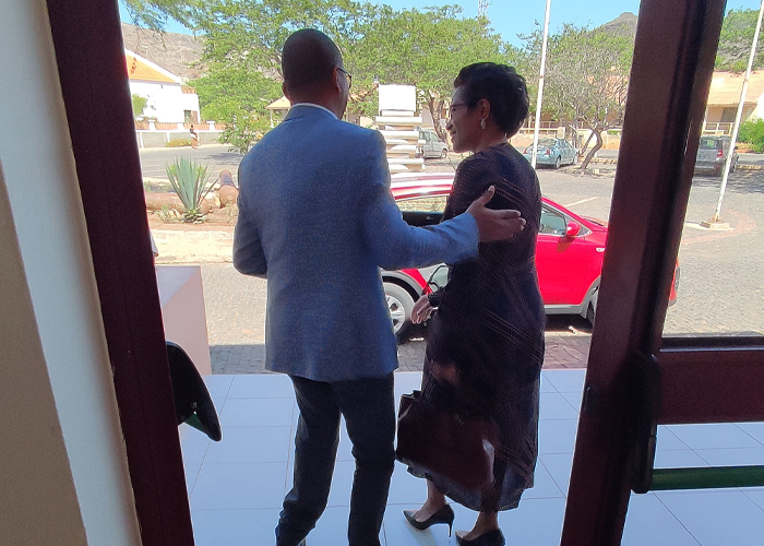 No âmbito da nova largada da Universidade Lusófona de Cabo Verde a convite da Reitoria, a Sr.ª Ministra da Justiça Dr.ª Joana Rosa visitou a universidade, no Mindelo, tendo-se reunida com o Reitor, Professor Doutor Carlos Alberto Delgado e com a Sr.ª Administradora, Dr.ª Filomena Martins.