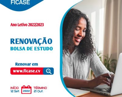 A FICASE informa que a renovação da Bolsa de Estudo para o ano letivo 2022/2023 encontra-se aberta