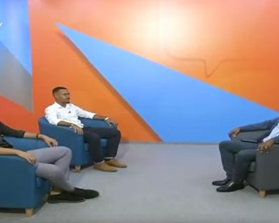 Eliandro Pinto e Marcio Soares, Estudantes do quarto ano do Curso de Gestão de Segurança da Universidade Lusófona de Cabo Verde tiveram participação no programa Sociedade Aberta da TCV.
