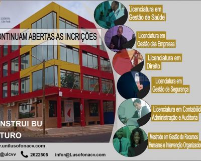 A Universidade Lusófona de Cabo Verde informa que ainda continuam abertas as inscrições para os nossos cursos.